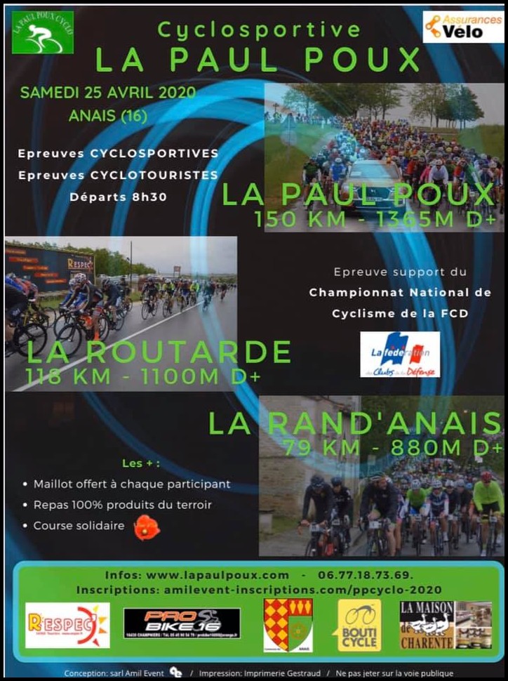 Les personnes qui souhaitent participer à la Paul Poux, le 25 avril 2020, peuvent se faire inscrire à l'occasion de la galette le 4 janvier salle des fêtes de Glane à 19h00